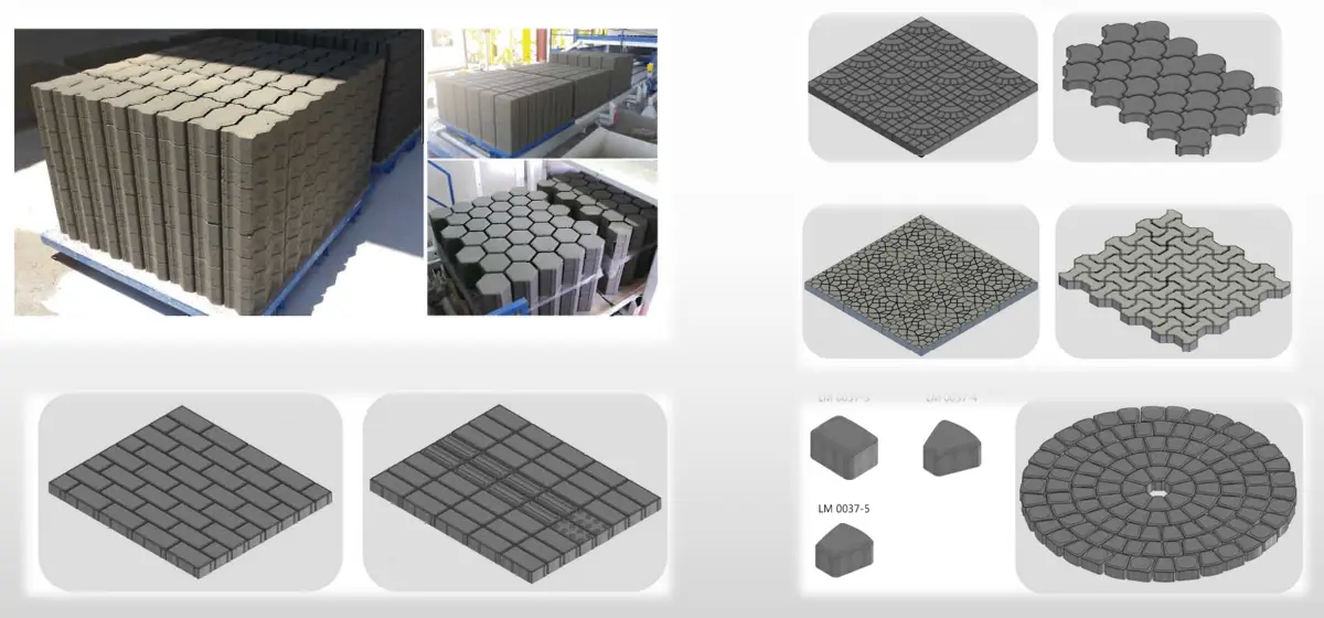 2. फुटपाथ ईंट के सांचे: मुख्य रूप से फुटपाथ ईंटों का उत्पादन करने के लिए उपयोग किया जाता है, जिसका उपयोग फुटपाथ और चौराहों जैसे सार्वजनिक क्षेत्रों में किया जा सकता है।